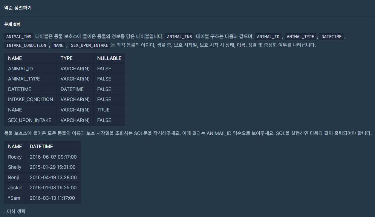 SELECT NAME, DATETIME FROM ANIMAL_INS ORDER BY ANIMAL_ID DESC;