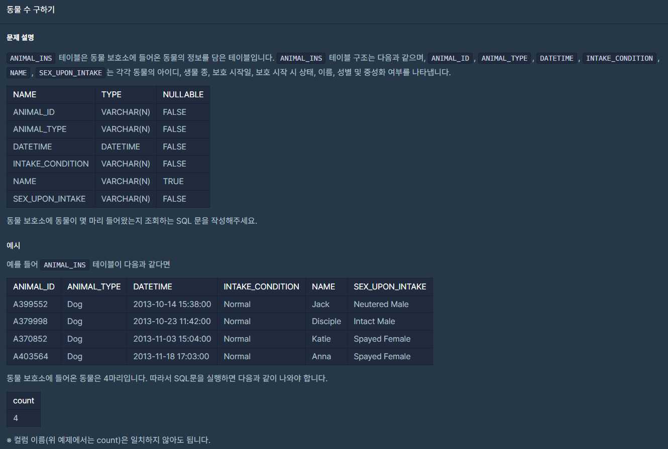 SELECT COUNT(*) AS count FROM ANIMAL_INS;