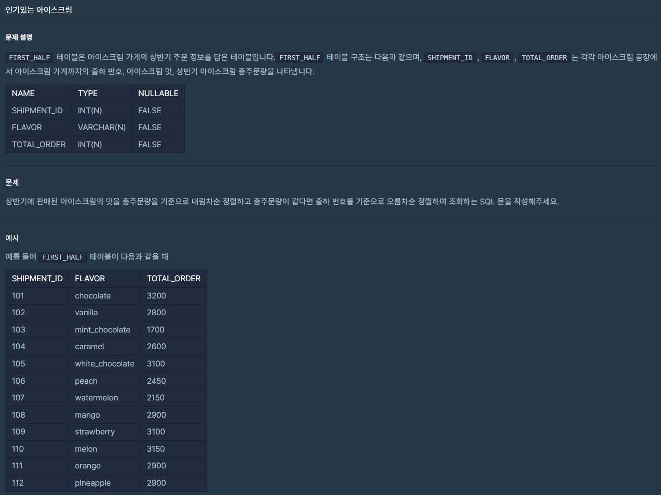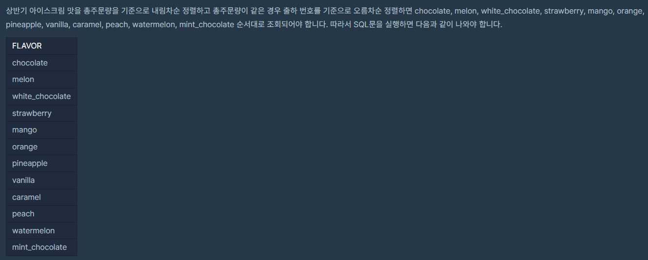 - 상반기에 판매된 아이스크림의 맛(FLAVOR) 조회