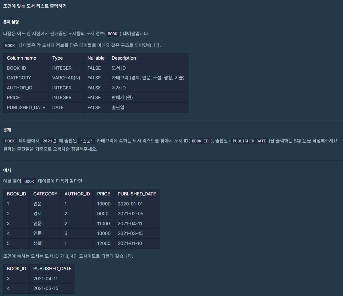 2. WHERE YEAR(PUBLISHED_DATE) = ‘2021’ AND CATEGORY = ‘인문’